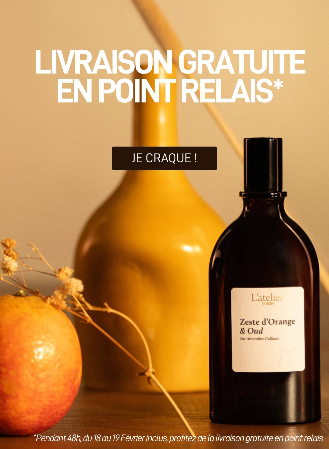 Livraison offerte en point relais jusqu'au 19 février Deux jours pour commander, simplement, sans frais de livraison Bonne nouvelle ! La livraison en point relais est offerte aujourd'hui et demain, soit jusqu'au 19 février inclus. L'occasion idéale de choisir votre fragrance 100BON et de recevoir votre commande en toute simplicité. Ajoutez vos produits au panier, sélectionnez la livraison en point relais au paiement, et profitez de l'offre automatiquement. L'équipe 100BON | | | | |